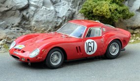 Ferrari 250 GTO LM/TDF 63/64/66Hand built available REN4362-07M64 Le Mans REN4362-07M167 TDF 1963 & REN4362-07M173 TDF 1964The three options offered in this kit are all for chassis 5095GT as it took part in the Tour de France in 1963 and 64 and in the Le Mans practice weekend in 1966. The rear panel will need painting light blue for the LM version but otherwise it is a simple red finish and the decaling is straightforward. As usual the option is included for the more experienced modeller to open the doors and the area that will need attention this time for final finishing is the spotlight arrangement on the front of the car.