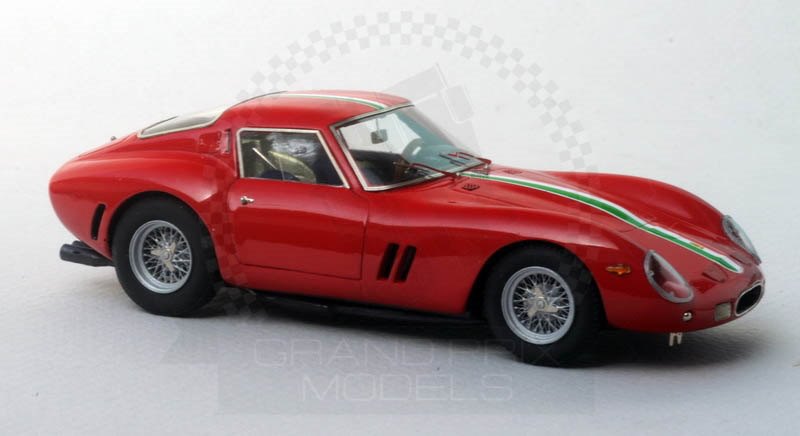 Renaissance’s very thorough modelling of each individual GTO doesn’t seem to be going in any particular pattern and several years into the project, here we have the very first chassis as it appeared at the press launch. The very first photos of the real thing saw it without a trim on the radiator opening but by its first motorshow appearance this had been fitted so you have a choice there. In original form there was no rear spoiler and the fuel filler is in the wing rather than the rear screen, making for quite a different look.