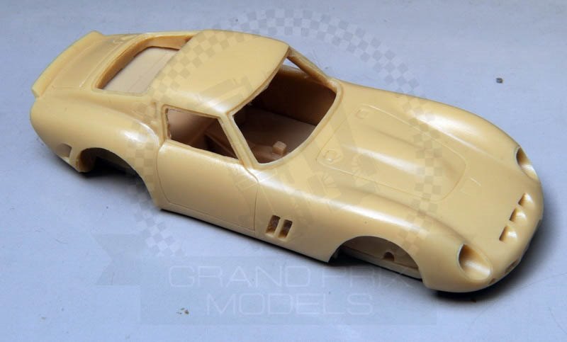 This particular GTO, chassis 3387GT, was the initial guinea pig for spoiler testing and it was with a narrow rear spoiler that it was delivered to the NART team for Sebring, Phil Hill and Gendebien bringing it home second overall. For Le Mans the narrow spoiler remained but the fuel filler was relocated to the rear windscreen and the original filler covered with a Prestolite sticker. These detail changes are clearly marked on the instructions and either version will look very smart in its metallic blue, particularly the sixth placed Le Mans car with a broad stripe from the nose to tail.