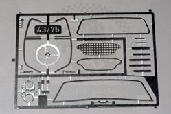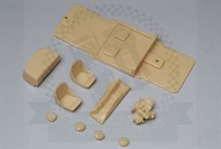 Unusually for a kerbside Renaissance kit, there is an engine included among the parts here, but as the air cooled flat twin was mounted right behind the grille, it will be visible on the completed model. That grille is made in fine photo-etch, as are the window frames and a few other tiny details. The main resin body casting will need quite a few feed tags removing but the main surfaces look clean. The windows are vacforms that are designed to fit from the outside and there are recesses on the body to take them.