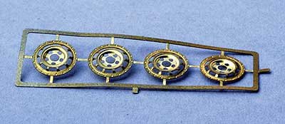 The descriptions speak for themselves really on these wheel sets. The Porsche 908/917 set consists of tyres, machined rims and resin five spoke wheel inserts. The Peugeot 908 set has very fine photo-etched spoke centres and to go behind these there are also etched discs and callipers. There are brakes in the Gotti wheel set too, though this time they will be difficult to see on the assembled wheel as the centres are fairly solid.