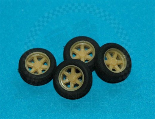 This 1:43 wheel set is suitable for a variety of rear-engined Renault based machinery, such as R8 Gordinis, Alpines A110s etc. The wheels are cleanly cast and the tyres have a basic tread. Ideal for diecast upgrades.