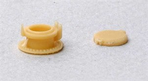 Supplied as a two-piece resin casting this is a flip top fuel filler typical of those seen on sports racing cars in the 1950s and 1960s. With the lid as a separate piece from the hollow neck, it can be fitted open or closed.