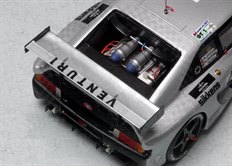 Despite a restricted budget, the Venturi factory built this very special GT1 challenger to take on the McLarens at Le Mans and early in the race things looked promising. The car certainly had the pace but an error in reconnecting the gear linkage after an unscheduled pit stop meant a 3 1/2 hour visit to the pit garage for an engine top end rebuild. It was still running at the end and had put in some very respectable lap times in the hands of Gounon and Belmondo but that time couldn’t be regained and they were unclassified at the finish. There was very little sponsorship on the car so decoration of the well cast resin body will be a simple single colour metallic grey paint finish and a few decals applied. There’s a fair amount of cockpit detail to get stuck into, plenty of photo-etch and the option of an open door should you wish.