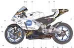Comments: For Tamiya 14097. Dutch Moto GP. Includes resin fairings, tank, seat, tail and frame parts. Decals too