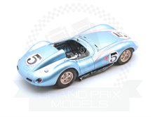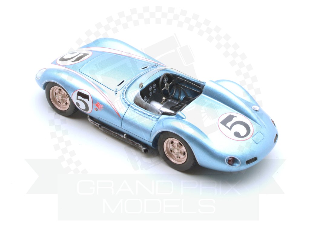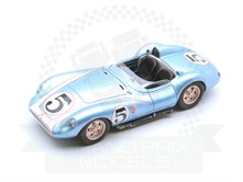 Chuck Daigh’s win in the Riverside 200 mile race marked the first win for the Scarab marque against an international field (albeit a small one) and was heralded as their arrival in the big time. Sadly they weren’t able to repeat the success, though there was plenty at a regional level. Spark’s model replicates this pretty front engined car superbly and is very well finished in a fine pale metallic blue. Panel engraving is spot on throughout and the small details are neatly applied.
