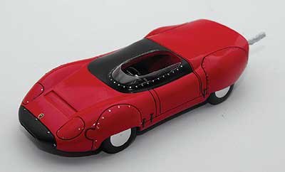 German engineer Klaus Steinmetz was the man behind the development, and the wheel, of this and a couple of other Abarth record cars built to attack standing start times in various capacity classes. The wheels were fully flared and the tuned length exhaust for the 216 bhp, 2-litre engine poked out of the back of the car for over eighty centimetres! The whole car, including the rather bizarre exhaust, is neatly modelled and in keeping with the rest of Spark’s Abarth range, the panel lines have been highlighted in black.