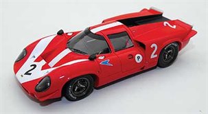 The Lola T70s proved their speed but not reliability at Brands Hatch, the Sid Taylor car starting from pole and the Surtees machine alongside on the front row. Both led the race, Hulme breaking the lap record first in the white car, then Surtees. The red car suffered carburettor problems which caused lean running and melted pistons, while the white machine had valve gear problems and retired eventually with clutch failure. There are plenty of photos of the cars around and Spark have done a fine job of capturing the smaller details with various winglets and gurney flaps, the spare wheel mountings (horizontal for Surtees, vertical for Taylor) and the rather makeshift luggage box under the tail all neatly made in photo-etch for the red car.