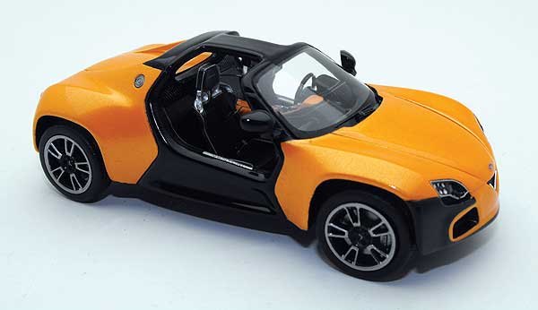 Venturi was a name that we associated with handmade sports cars and Le Mans but times have changed and while they are still hand built and exclusive, their favoured form of propulsion is now electric motors. The America is made in a run of 100 examples and the “high riding sports-car” as Venturi call it is a dune buggy for the present day. Spark modelled one of the show cars and the front and rear body sections are finished in a vibrant metallic orange which also appears in the open cabin along the top of the central tunnel.