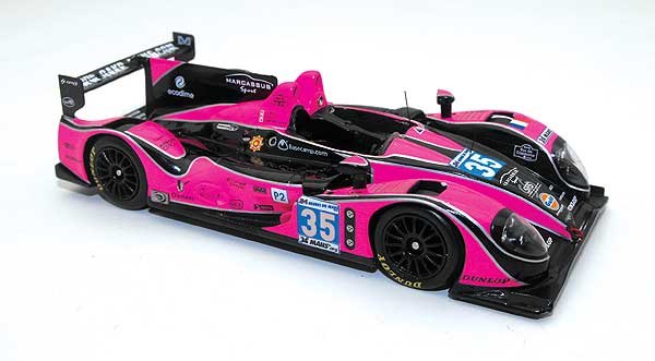 The #24 car was first of the 2012 Le Mans entries to arrive from Spark with the others here were only a week or so behind. The new regulations at Le Mans meant that the bodywork directly above the tyre had to be open and in this area on the model the casting has to be extremely fine. The smaller aero details on the side air intakes look to be very thin cast parts too and there’s plenty of etch including the dorsal fin. The P2 entries were effectively re-badged Pescarolos so physically the three cars here look very similar and to add to the confusion the P1 #15 and the #24 cars share near identical Gulf liveries while the #35 machine wore the vivid pink and black that we’ve seen from OAK Racing before and this was the only one of the three that finished. The decal placement on all of them checks out well with photos and there’s plenty of carbon fibre in evidence.