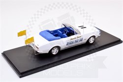 Providing the pace car for the Indy 500 is a matter of great prestige for American car makers and Chevrolet celebrated the launch of their new Camaro by supplying an SS specification convertible version for the 1967 race. Ex-Indy 500 racer Maury Rose was the nominated driver and the car was finished in white with blue interior and blue and gold signwriting on the sides. The overall look of the car is very good and the application and finish of the decals and trim is excellent. Our only gripe is that those yellow flags on the rear should be much larger, coming over half way down the mounting poles.