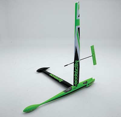 Something a little different from Spark this time. Greenbird is a British built, lightweight composite craft designed to set a new record for wind powered vehicles, something that it achieved in late March 2009. As the driver (or is he a helmsman?) has to tack and track the wind the speeds were measured using a GPS trace rather than following a straight line between traps on a powered record. Also unusual is that the model must be assembled upon receipt. The parts are very well finished and it all slots together simply and securely for display, so this will pose no problems whatsoever.