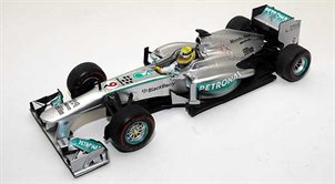 Spark has released three versions of the Mercedes Grand Prix cars of Rosberg and Hamilton. For the Australian Grand Prix we see the cars fitted with the red banded ‘super-soft’ tyres and the decoration looks to be correct. Nico Rosberg started from sixth on the grid but his race ended at roughly half distance with electrical failure.