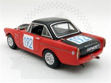 Cooling was an issue even for road going versions of the Sunbeam Tiger, so with a larger, Shelby-tuned V8 fitted in this ex-works rally car, plenty of vents were added. At the front we see the grille and bumper removed to allow as much air in as possible and the trailing edge of the bonnet is also neatly propped open. At the rear the boot is also open to allow air over the rear brakes and axle. The bonnet and boot panels are neatly painted in satin black, as is the roof and the few decals on the car are accurately placed, with attention having been paid to the creatively painted race number on the front. It’s an ugly beast, but it has been beautifully modelled.