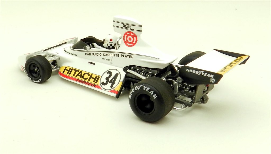 Brabham had no fewer than seven cars on the grid of the Belgian GP, most of them wearing sponsorship from Hitachi in a one-off deal for the race. One of the older BT42s was for local driver Teddy Pilette who was making his debut and managed to get the car to the finish despite major tyre problems. Some of the suspension detailing is a little heavier than we are used to seeing on Spark’s F1s but the rest of the model looks very good with correct bodywork configuration and accurately placed decals. Many photos of the car are from practice but the race correct additional Gurney flap on the front is present.