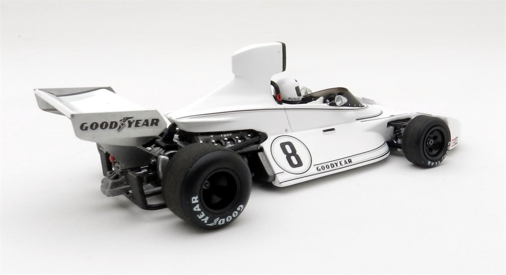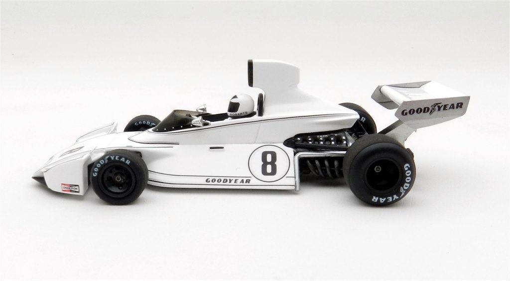 Essex farmer Richard Robarts started racing in his mid-twenties and soon discovered an aptitude for competition, sharing the 1973 Lombank F3 title with Tony Brise. The next step was F1 and he was able to buy a seat at Brabham for the 1974 season, his best result came in Brazil with fifteenth overall. He was replaced after only three events by the better funded Ricky von Opel. Most photos from this weekend appear to be from practice but the model has the correct minor sponsors for the race and also the correct rear wing endplates.