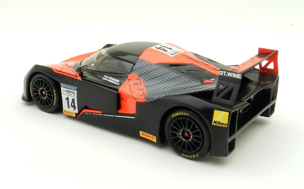 Most manufacturers spend a great deal of time and effort to remove weight from a road car to create a racer, but for KTM they had to add significant amounts of bodywork to comply with GT4 regulations. It’s an outrageous looking thing which looks as if it was created using folded panels. The exterior surfaces on the model are a mix of deep gloss black, raw carbon and extremely vivid orange which our photos cannot quite convey.