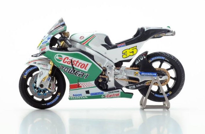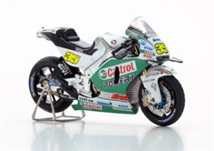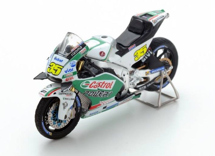 Cal Crutchlow’s LCR Honda wore several different liveries during the course of the 2016 season and here we see it in classic Castrol colours. This wasn’t the only race for him in these colours, nor was it the most successful but we’re guessing that Spark have chosen it was a wet race and they have excellent rain tyres for their 1:43 bikes. As we’ve commented on some of the other 1:43 MotoGP releases, the front brake is perhaps a little over scale but the rest of the detailing looks very good and the decoration on this tiny miniature is excellent.