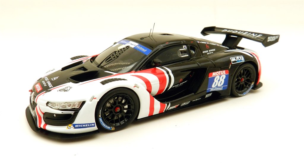 Renault’s RS01 was designed as a one-make racer as part of the Renault World Series, but with that programme winding down, two teams entered their cars in the final round the French GT Tour to see how they compared with the GT3s. This example run by Duqeine Engineering was tenth in the first race of the meeting and won its class, but failed to finish race two. The black, white and red livery isn’t the most inspiring, but it has been well applied on the model, the lighter colours all as neatly fitting decals. Only 300 examples of the model have been made.