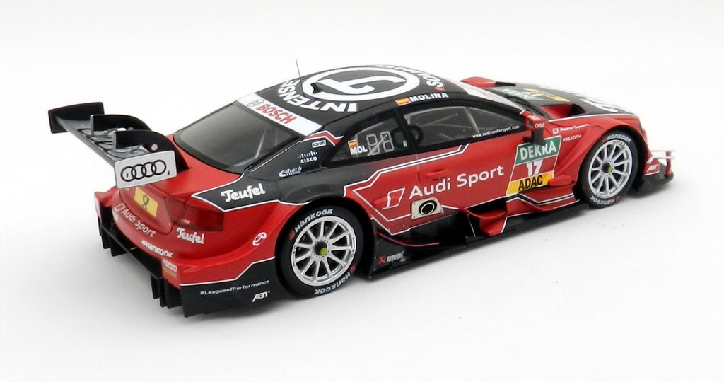 Alternative version SPKSG293 Rockenfeller SPKSG294 Scheider & SPKSG295 TambayWith the release of these four, Spark have made all the DTM Audis. Mike Rockenfeller’ s car is wearing the familiar yellow and green of Schaeffler and on Molina’s double race winner we see the red and black of Audi Sport. Scheider and Tambay had new liveries for 2016 and all of the colour schemes follow a similar basic pattern with the colour changes giving very different effects. With satin paint and carefully applied decals the overall finish is very consistent and the smaller detail parts are also carefully placed.