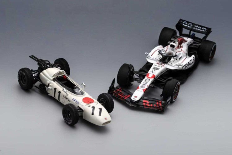 A tribute to Honda and Formula 1In 1965, Honda made history at the Mexican Grand Prix — achieving its first-ever F1 victory with the legendary RA272, dressed in the Japanese colour, pure white and red.Sixty years later, the Red Bull RB21 appeared in a the same special white and red livery at Japan GP 2025 — echoing Honda’s origins and Japan’s racing pride. Now, these two icons stand together — six decades of innovation, passion, and spirit. United in one exclusive set. Two eras, one legacy.