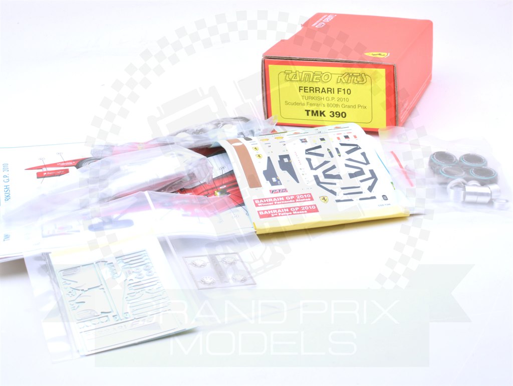 As the only team in Formula 1 who have been there from the start, Ferrari keep setting records for race starts and race wins and the Turkish Grand Prix this year was their 800th race. Having had the perfect start to the season, Ferrari had dropped off the pace a little by Turkey and managed only seventh and eight places for Massa and Alonso respectively. The car is physically little changed from the early season car and the well cast kit parts are extremely similar to those for the Bahrain car (TMK389) with plenty of well cast white metal, machined wheel rims, vinyl tyres and sensible use of photo-etch. For this race the livery represented that milestone number of race starts and the clearly printed decals are correct for the race. A typically well made kit that will build into an important part of Ferrari F1 history.
