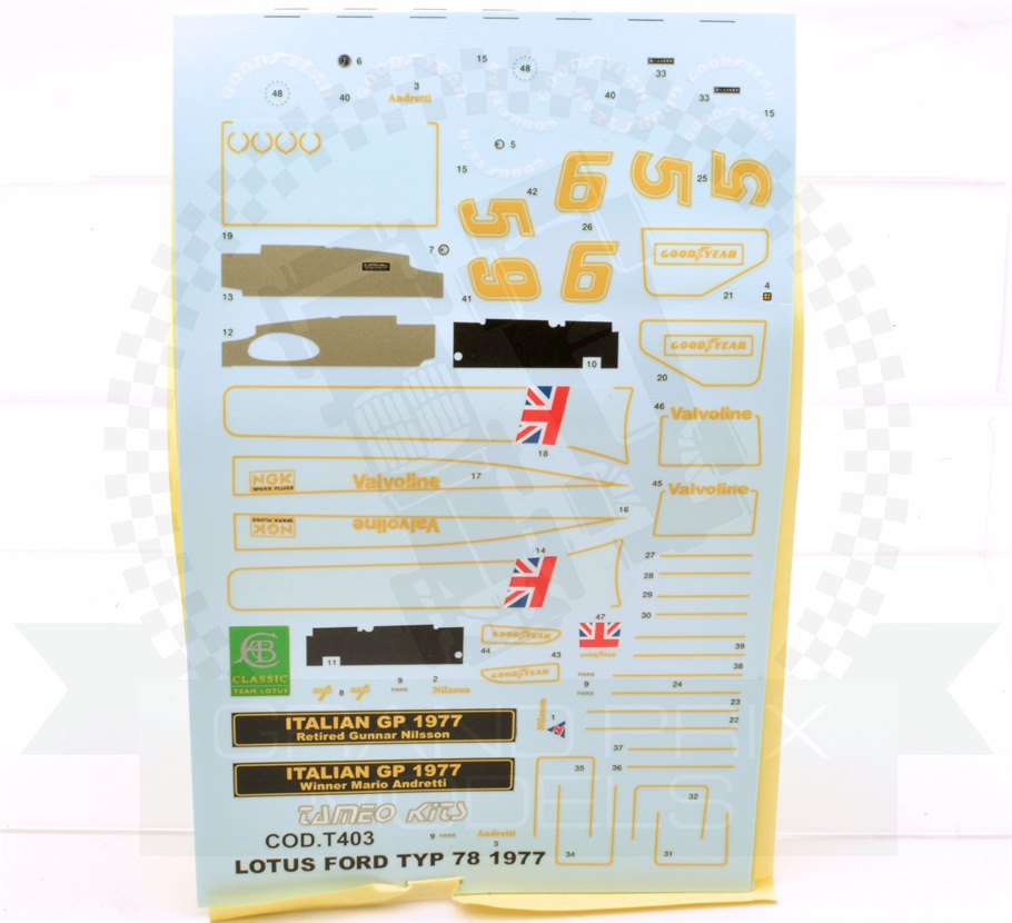 Lotus 78 JPS Mk3 1st Italy 1977 #5/6 Andretti/Nilsson by Tameo Kits