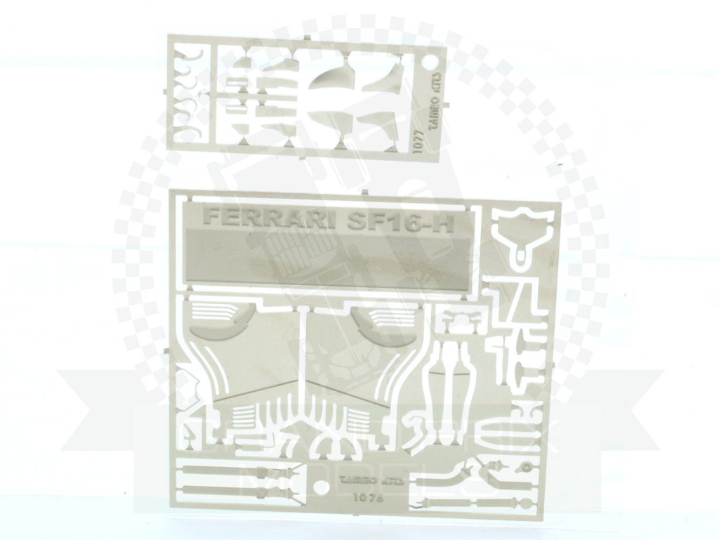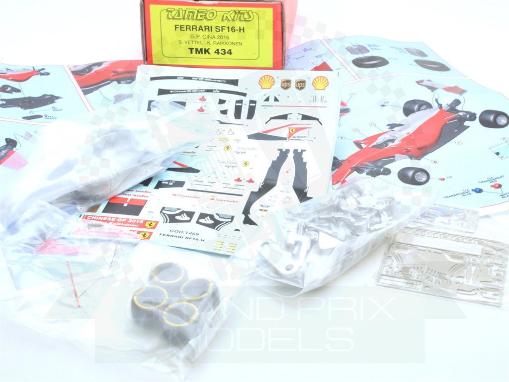 Tameo’s first kit for the 2016 season offers the Ferraris from one of their more successful weekends thus far, Vettel finishing second and Raikkonen fifth in China. The new livery this year means that careful masking will be needed for a two tone finish with the white around the cockpit opening and on the airbox needing to be painted. The lower sides are included on the decals, so this area will be simpler. The etched parts include rear wing endplates and many of the smaller details from the complex front wing and as usual, all of the parts beautifully made with minimal excess material.