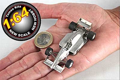 No you haven't mis-read that, this really is in 1:64th scale. Why? Well we assume because Minichamps have produced a series of models in this scale including a number of Senna cars, so this is a fairly logical item to follow this theme. The kit parts are pretty simple and we see the usual mix of white metal for the body and larger ancillary parts, machined wheel rims and photo-etch for the suspension and wing endplates. The decals are clearly printed and all of the orange sections of the livery appear to be included, so there is no fiddly masking to do on the tiny body. A classic Tameo kit, just smaller!