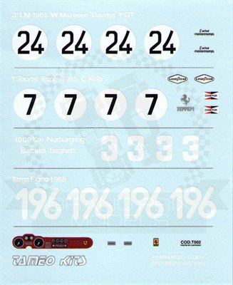Ferrari 275 GTB/C Experimentale Decal by Tameo Kits