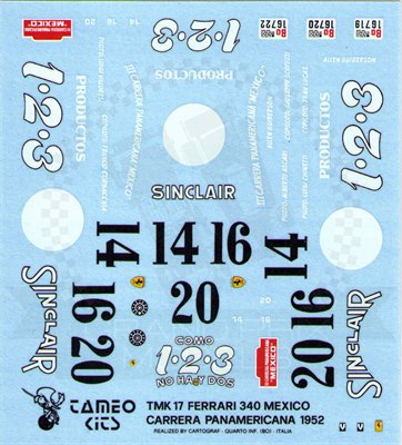 Ferrari 340 Mexico 1952 #14/16 Ascari Decal by Tameo Kits