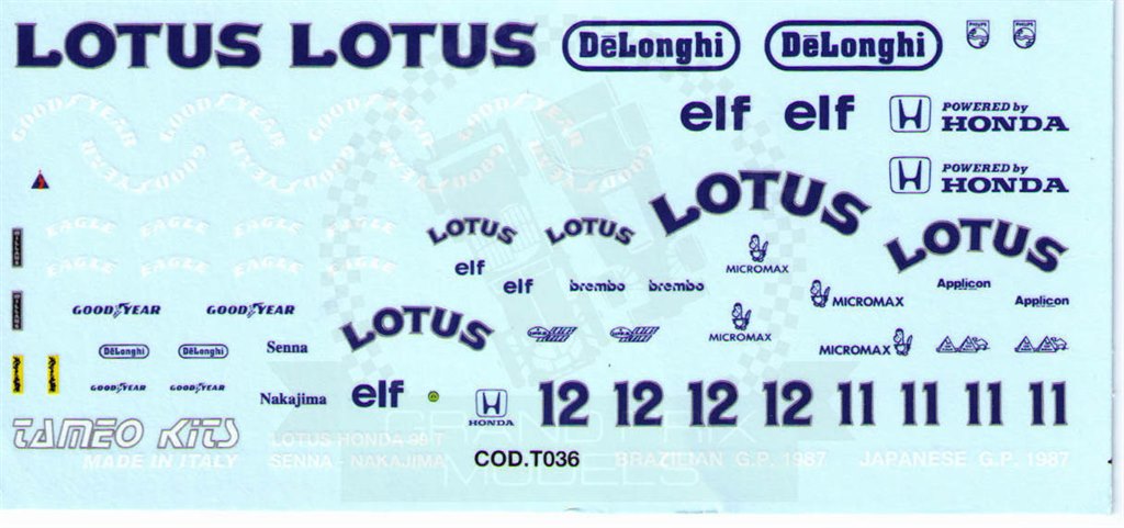Lotus 99T 1987 Decal by Tameo Kits