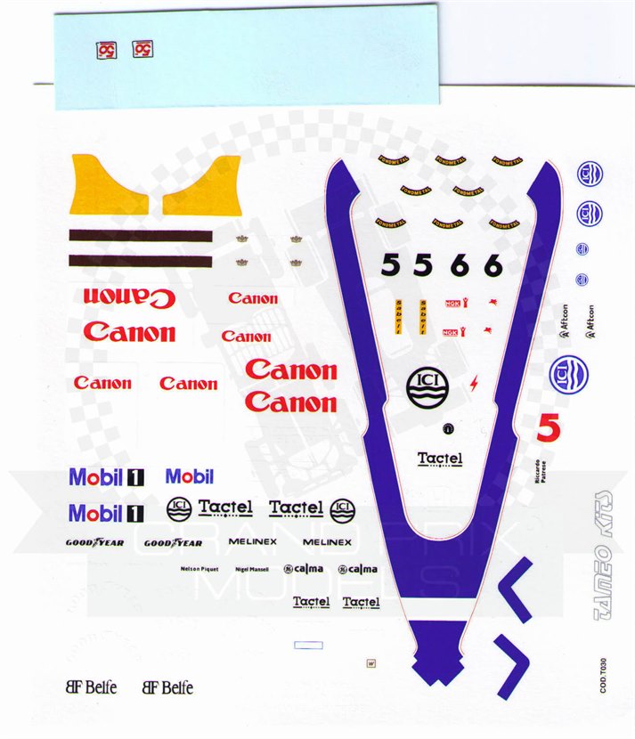 Williams FW11B San Marino 1987 #5/6 Decal by Tameo Kits
