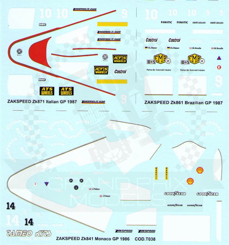 Zakspeed 871 Italy 1987 Decal by Tameo Kits
