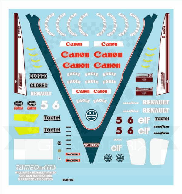 Williams FW12R San Marino 1989 Decal by Tameo Kits