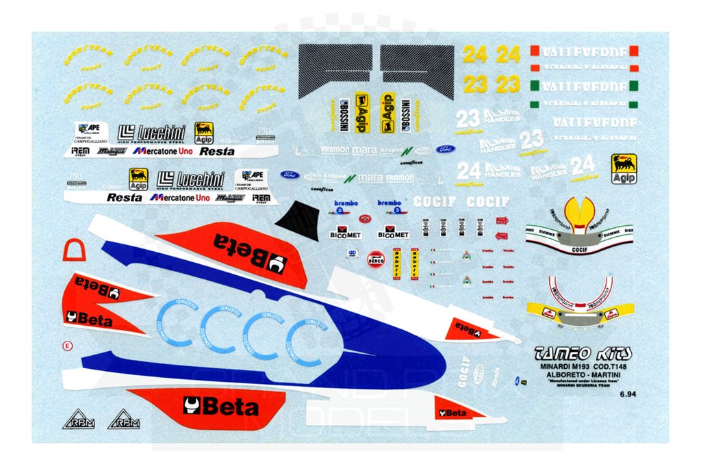 Minardi 193B Brazil 1994 Decal by Tameo Kits