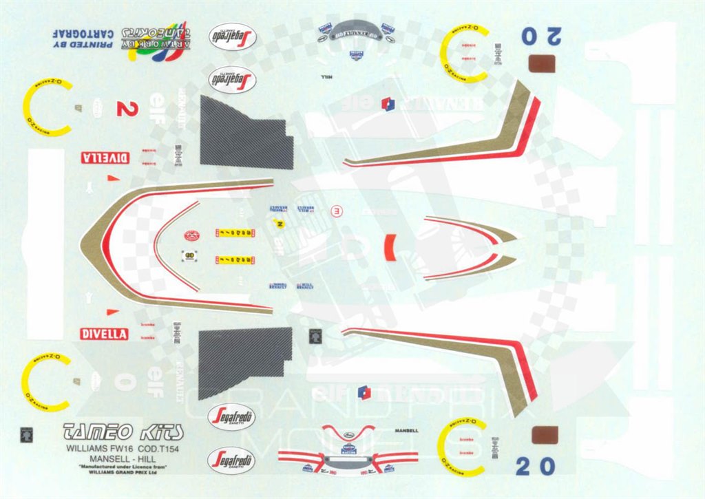 Williams FW16B Australia 1994 Decal by Tameo Kits