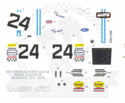 De Tomaso Williams Monaco 1970 Decal by Tameo Kits