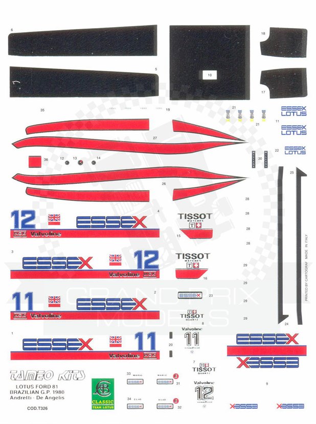 Lotus 81 Brazil 1980 Essex Decal by Tameo Kits