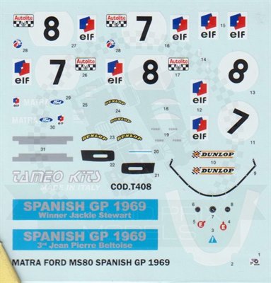 Matra MS80 Ford 1st Spain 1969 Decal by Tameo Kits