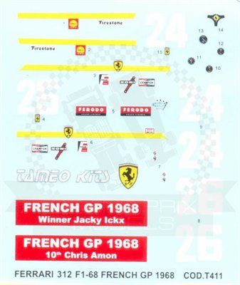 Ferrari 312 1st France 1968 Decal by Tameo Kits