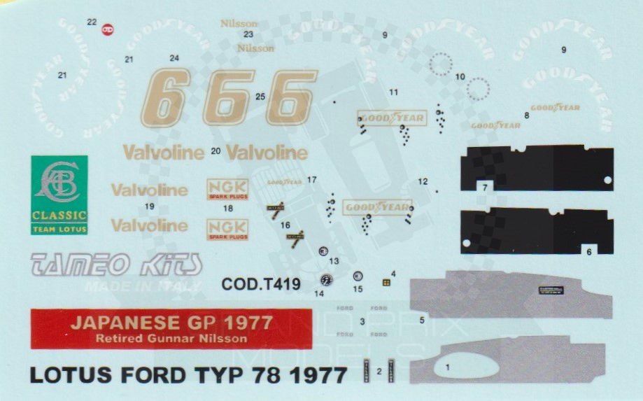 Lotus 78 JPS Mk3 Japan 1977 Decal by Tameo Kits