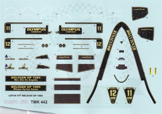 Lotus 97T 1st Belgium 1985 #11/12 Senna/De Angelis Decal by Tameo Kits