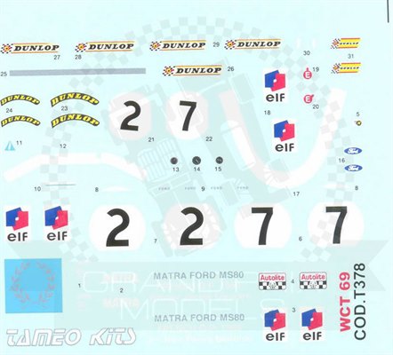 Matra MS80 France 1969 Decal by Tameo Kits