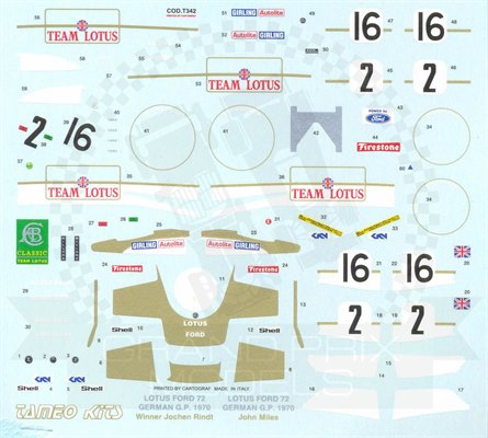 Lotus 72C 1970 Rindt Decal by Tameo Kits