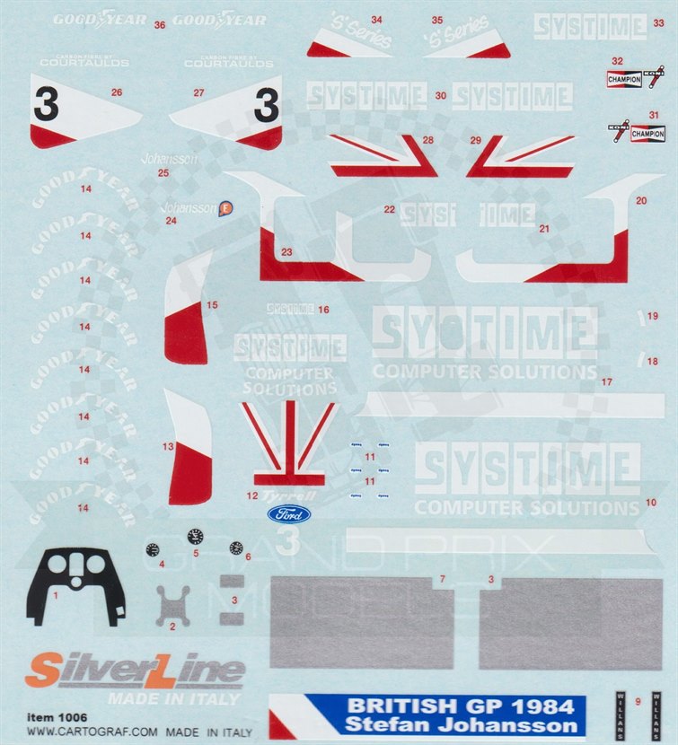 Tyrrell 012 UK 1984 Systime Decal by SilverLine