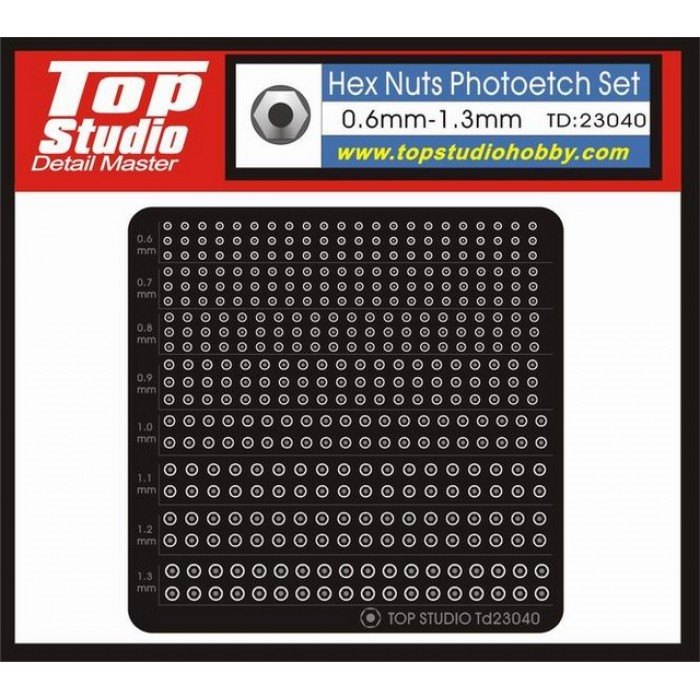 Hex Nuts Photoetch Set (0.6mm - 1.3mm) by Top Studio