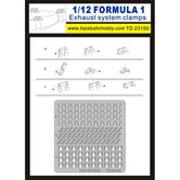 Handy accessories for anyone detailing plastic F1 car kits, each pack contains three designs of exhaust joining clamp, with several cars worth on each sheet. Each part will need careful folding before fitting and the etch is fretless to reduce the risk of damage.