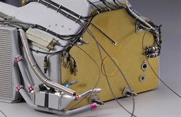 Plumbing and wiring of your Tamiya kit takes centre stage here. There are several sheets of etch radiator and cooled facings, the main ECU (layered up to create a realistic heat-sink), cable channels and a multitude of fixings. Along with these there are resin cooler bodies and pipes and a selection of hose ends and electrical plugs, some in resin and others as machined pieces. The instructions include detailed wiring bundle drawings so that you can trace the individual cables in their bundles from the ECUs to their respective sensors. High detail indeed.