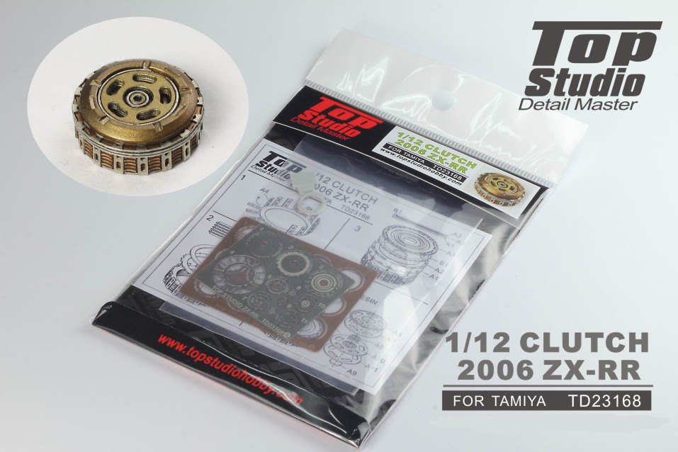 Kawasaki ZX-RR Clutch Made to fit Tamiya kits The design of these clutch detailing sets all follow a very similar pattern with a sequence of fine etched brass plates to be stacked into an etched stainless steel cage. That cage needs careful bending and slotting together and there is a resin centre cover. Each is a slightly different design to reflect the specific bike and all will add subtle detail to your model.